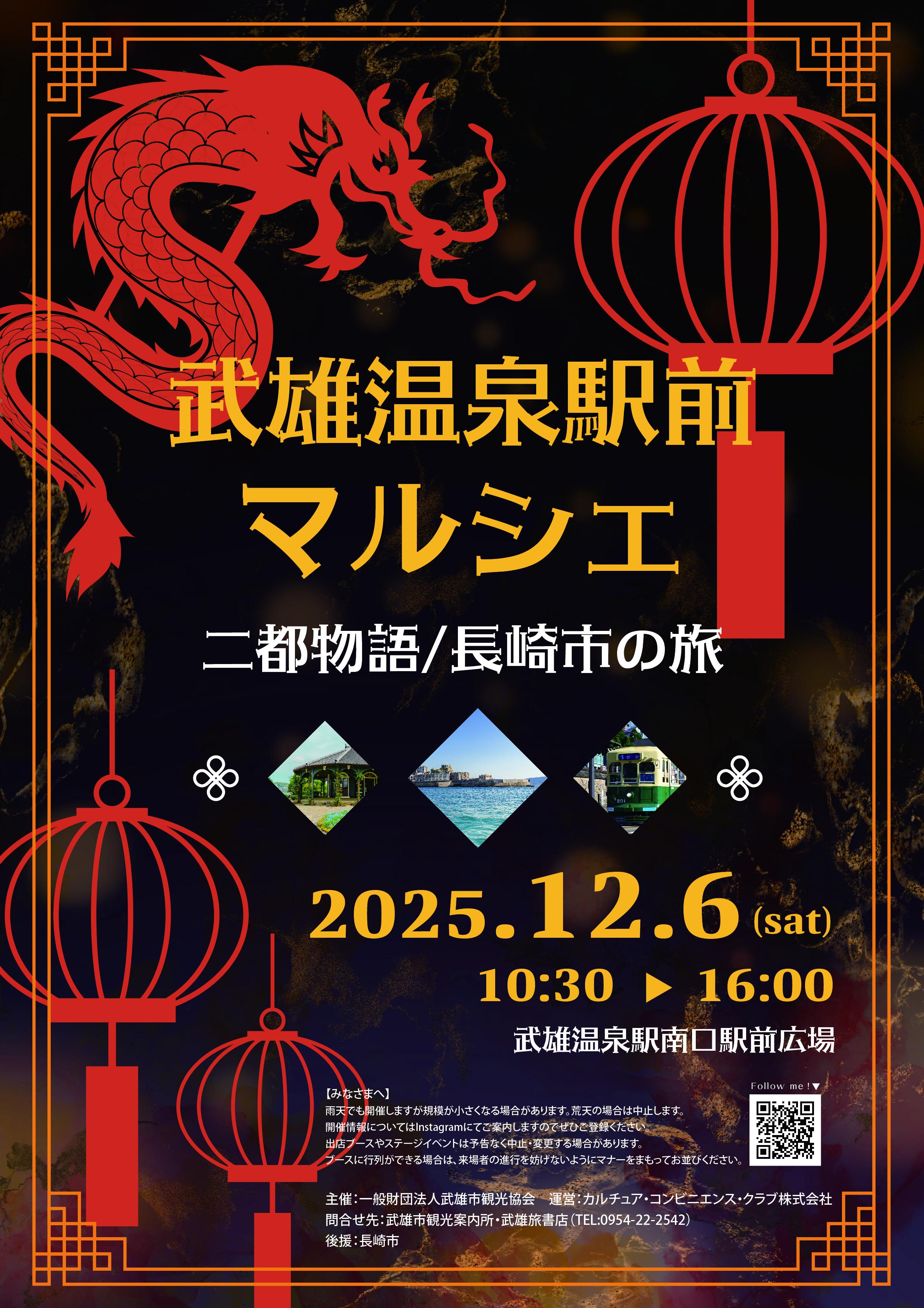 2025年最後のマルシェ、長崎の魅力を感じに、ぜひ武雄温泉駅前へお越しください。